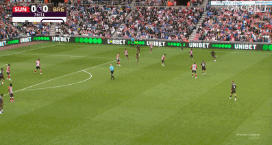 第76分钟,布伦特福德右路一路带入禁区后送出挑传,蒂亚戈头球顶出个弹地球破门,布伦特福德1-0桑德兰。↓