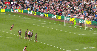 勒费主罚点球骗过门将将球打进,桑德兰1-1布伦特福德。↓